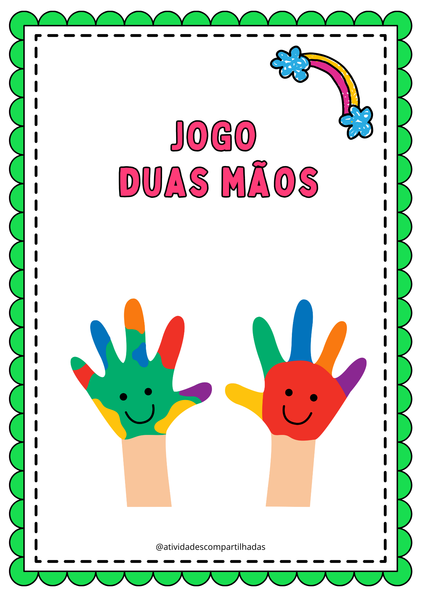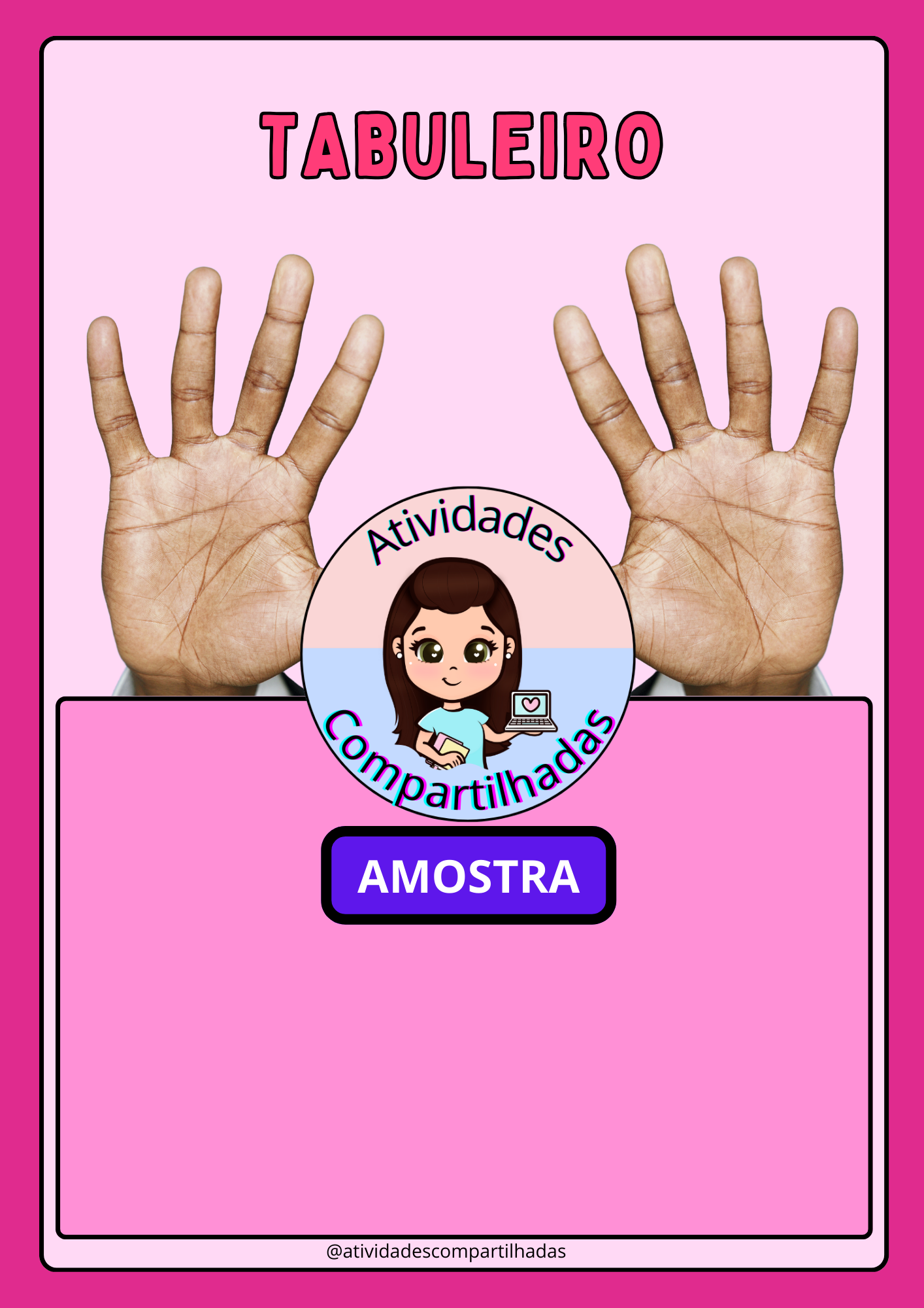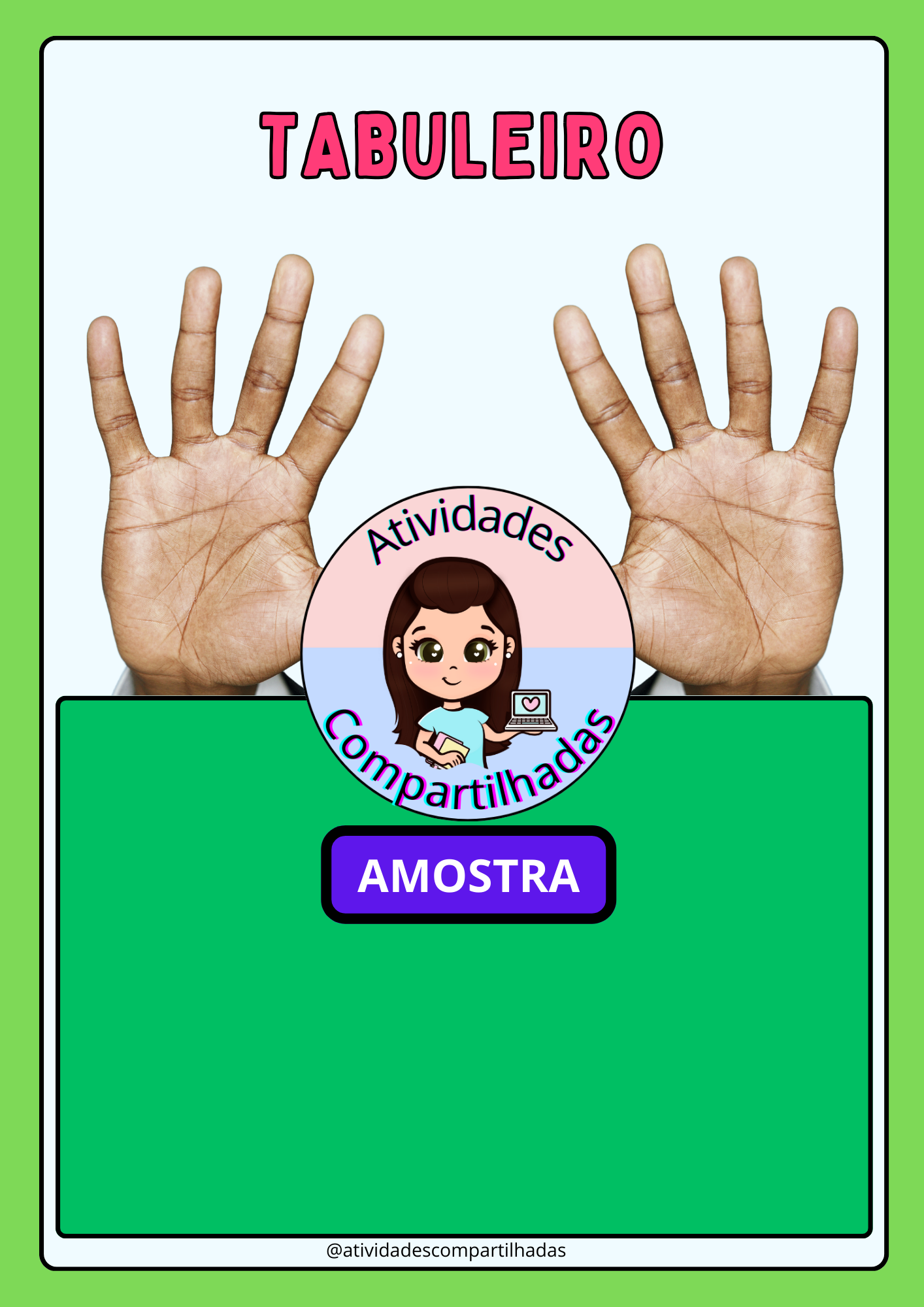📦 Materiais simples: tabuleiro com mãos desenhadas, palitos, dado e liguinhas.